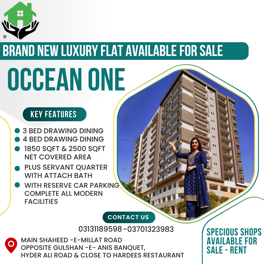 Ocean One is a premium residential apartment project offering brand new luxury flats designed for modern urban living. Located on one of Karachiโ€™s most central and accessible roads, this project is ideal for families seeking comfort, space, and convenience in a high-end residential environment.